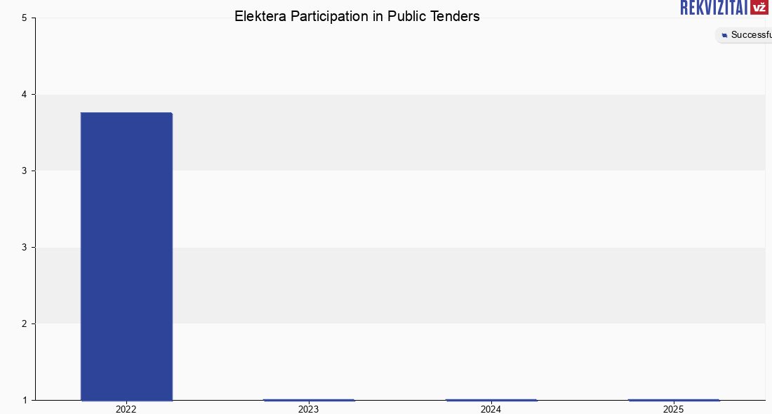 In 2022, Elektera, MB, secured victories in 4 public tenders as a supplier. The following year, in 2023, the company was successful in winning 1 public tender. The following year, in 2024, the company was successful in winning 1 public tender. The following year, in 2025, the company was successful in winning 1 public tender. It is important to note that we exclusively disclose information pertaining to successfully won public tender competitions.
