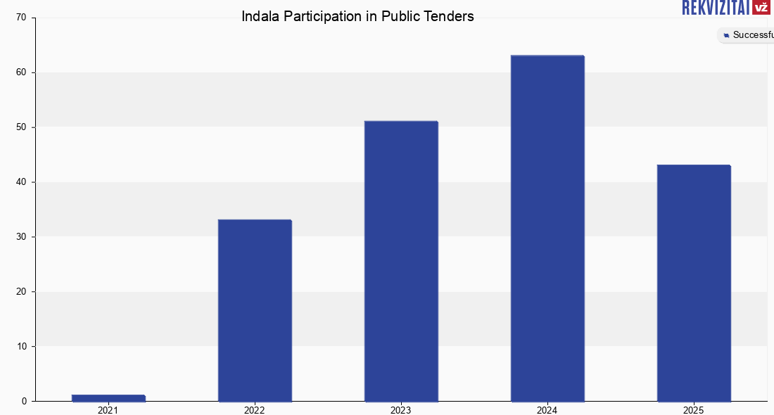 In 2021, Indala, UAB, secured victories in 1 public tender as a supplier. The following year, in 2022, the company was successful in winning 33 public tenders. The following year, in 2023, the company was successful in winning 51 public tender. The following year, in 2024, the company was successful in winning 63 public tenders. The following year, in 2025, the company was successful in winning 43 public tenders. It is important to note that we exclusively disclose information pertaining to successfully won public tender competitions.