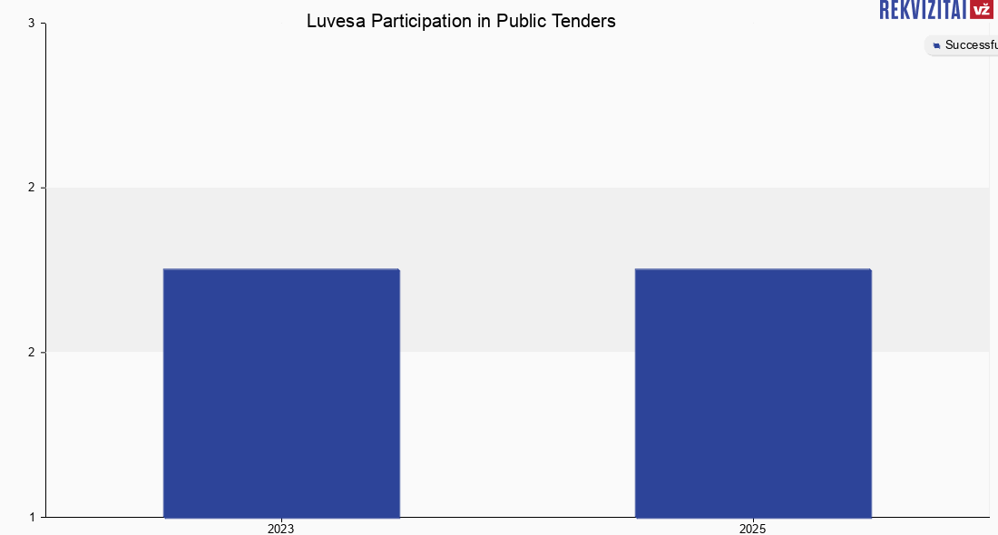 In 2023, Luvesa, UAB, secured victories in 2 public tenders as a supplier. The following year, in 2025, the company was successful in winning 2 public tenders. It is important to note that we exclusively disclose information pertaining to successfully won public tender competitions.