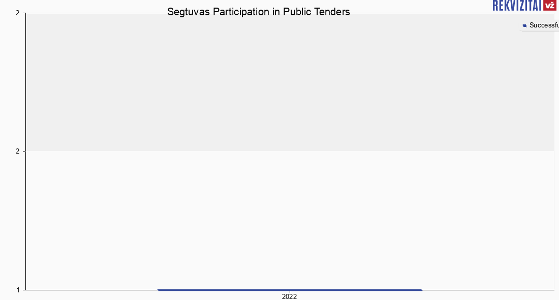 In 2022, Segtuvas, UAB, secured victories in 1 public tender as a supplier. It is important to note that we exclusively disclose information pertaining to successfully won public tender competitions.